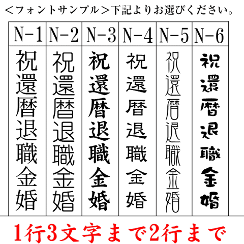 1行目に『祝○○』とご記入頂ければ見本通りの囲み(中抜き)文字にて制作致します。
