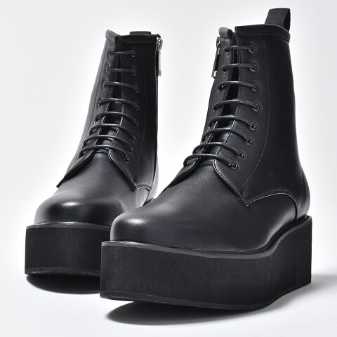 シャープな木型を使用した 厚底 レースアップ ブーツ 。