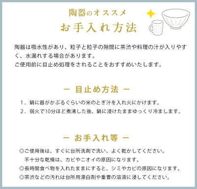 商品ページ内の「陶器に対するご理解とお願い」を必ずお読みください。