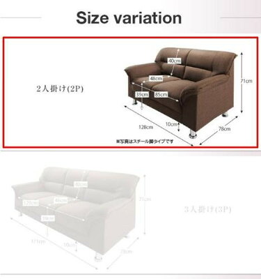 FABRIC ファブリック●2人掛け 【サイズ】(約)幅128 奥行78 高さ71cm 【中材】ウレタン、鋼鉄S字バネ 【生地】ポリエステル100%【商品重量】(約)24kg【梱包サイズ】(約)130 80 65cm 【梱包重量】(約)26.5kg【生産国】中国 ※スチール脚・天然木脚の長さはどちらも10cmです。